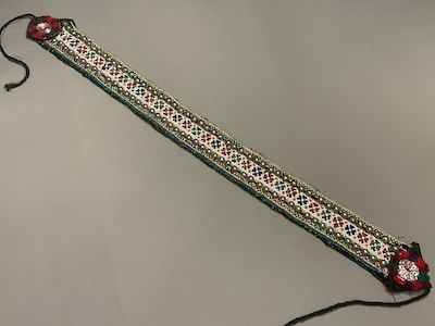 Gürtel bestickt mit Münzen, Knöpfen, Borte und Perlen