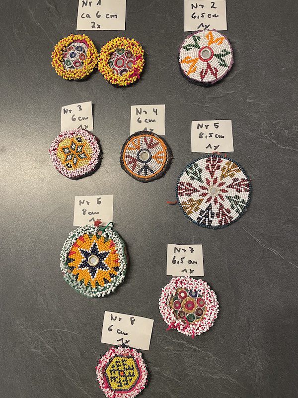 Applikation mit Kaurimuscheln und Münzen