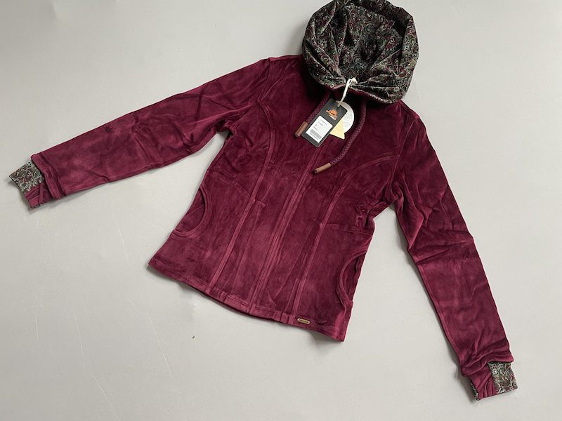 Jacke/ jacket aus organic Samt - hoher Kragen - Kapuze farblich abgesetzt - Kapuze mit Reißverschluss / Zipper Hoody - dicke, geflochtene Zugbänder für einen sprotlichen Look - Eingrifftaschen - Reißverschluss mit YKK Doppel-Zipper - glatte Stulpen im Armabschluss mit Daumenloch, farblich abgesetzt - designed in BERLIN